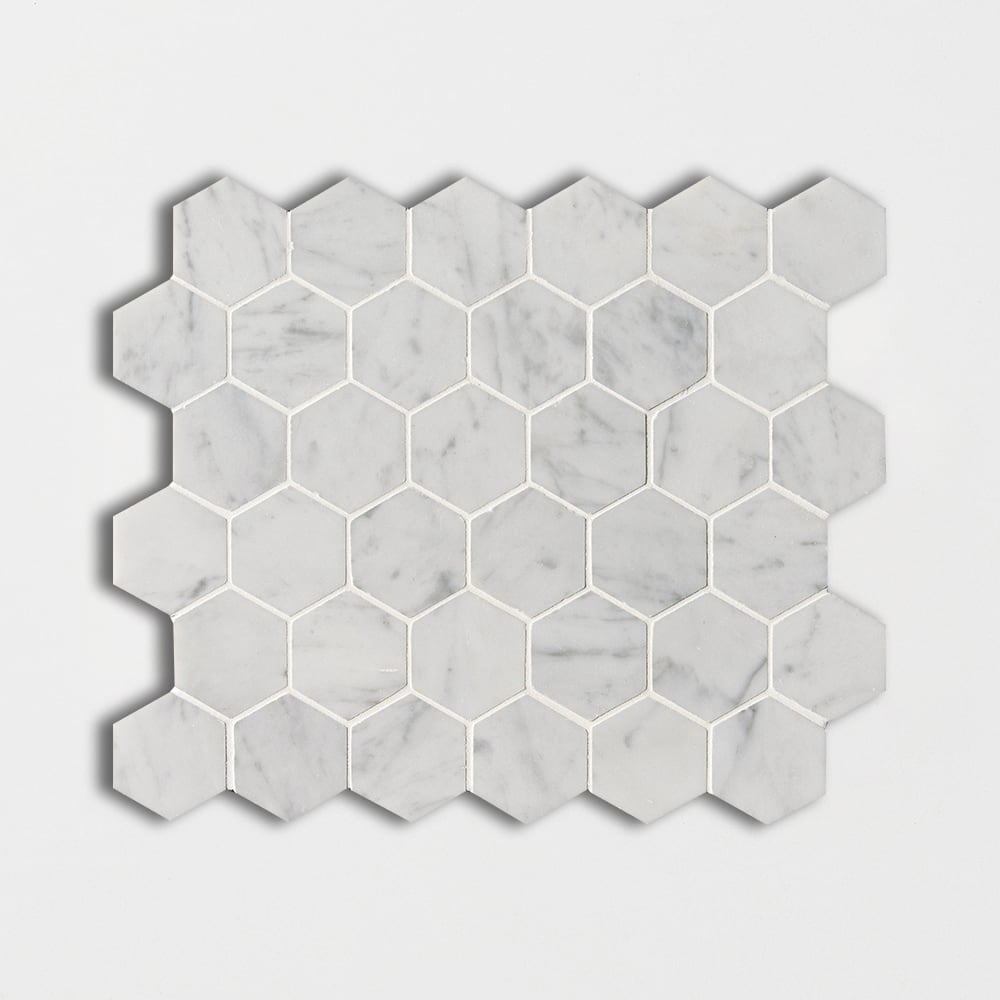 White Carrara C Honed Hexagon Marble Mosaic 12×12